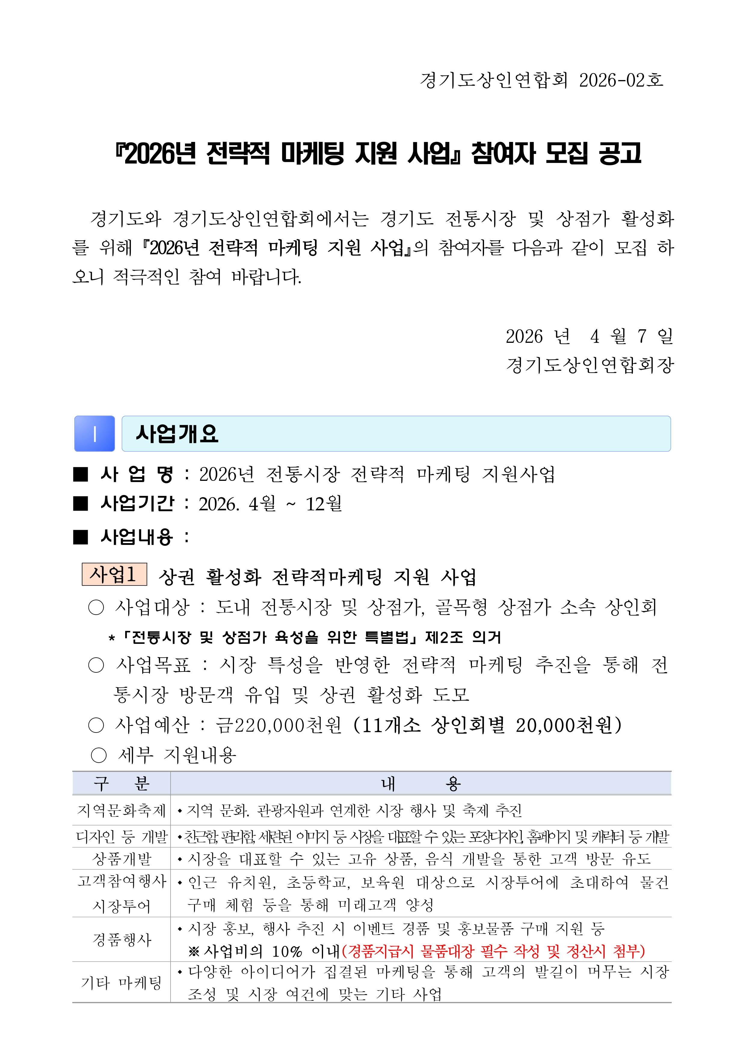 ¡º2026³â Àü·«Àû ¸¶ÄÉÆÃ Áö¿ø»ç¾÷¡» ¸ðÁý °ø°í